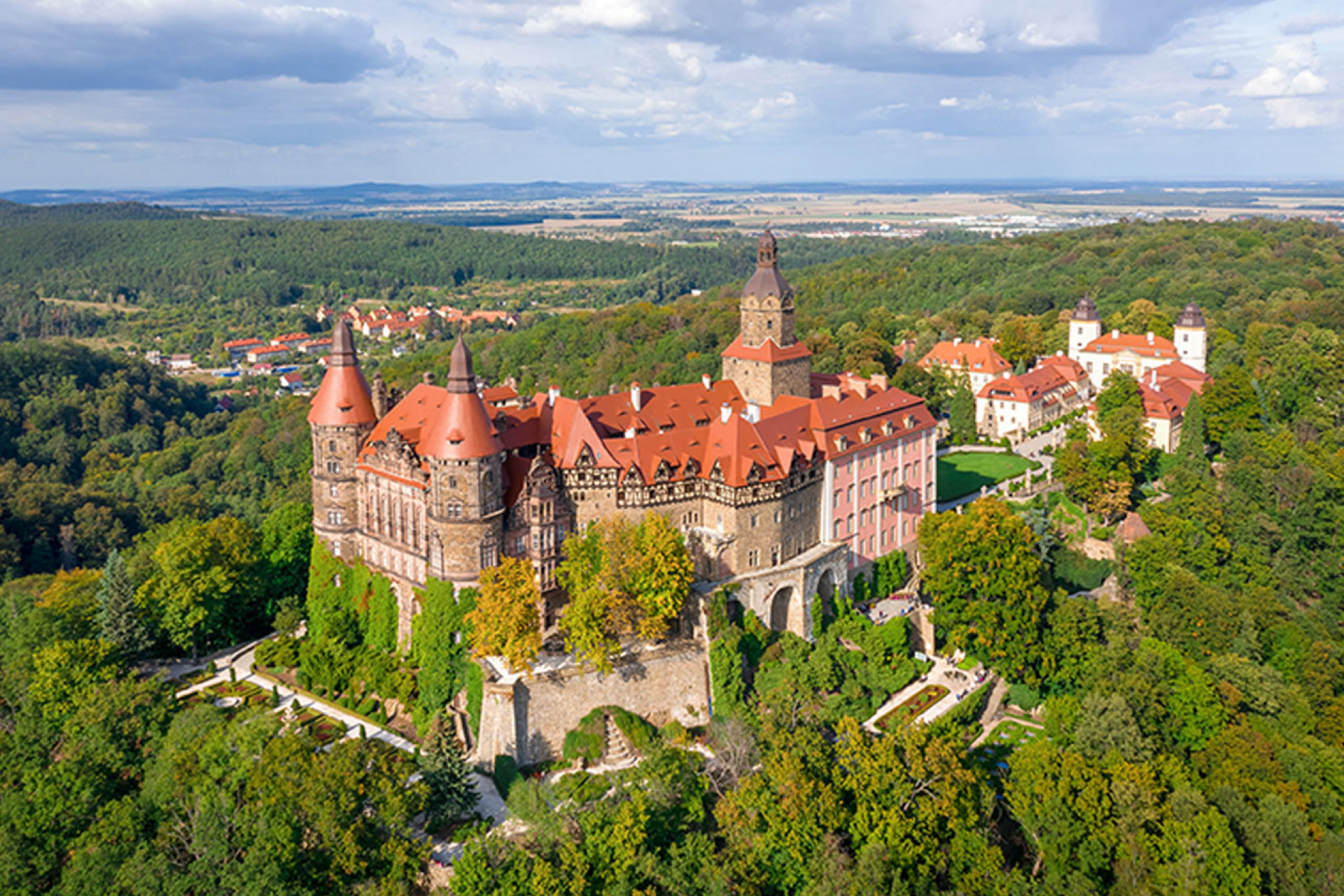 Mit dem Bus geht es nach Schloss Ksiaz (Fürstenstein), dem größten Schloss Schlesiens und dem drittgrößten Polens. Unter dem Schloss befinden sich noch heute unerforschte Stollen des „Projekt Riese“. Wir besichtigen die begehbaren Stollen und das Schloss. Ihr Reiseleiter wird Hinweise zu Treppen und Höhenunterschieden geben. Beladen mit erstaunlichen Eindrücken geht es weiter nach Walbrzych (Waldenburg) um mit dem Zug Richtung Jelenia Gora zu fahren. Dabei befahren wir auch die erst 2025 neu eröffnete Bahnstrecke nach Karpacz (Krummhübel). Abendessen und Übernachtung in Jelenia Gora.FREITAG, 24. ARPIL 2026
