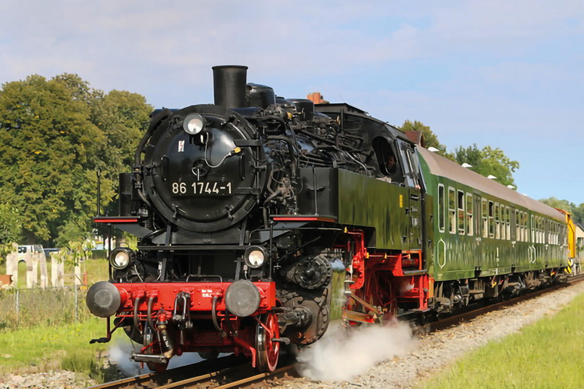 4 Tage Volldampf mit den Dampflokomotiven 23 058, 23 1097, 86 1333, 86 1744 und 52 8141 durch die Oberpfalz, das Vogtland, das Erzgebirge, das Lausitzer Bergland, dem Elbsandsteingebirge, dem Thüringer Holzland und dem Frankenwald. Zentrale Übernachtung in Dresden.