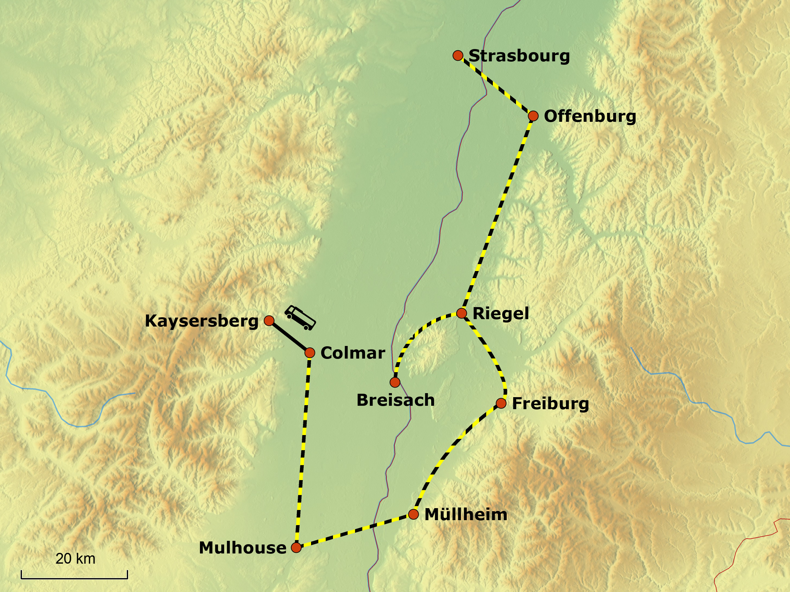 An unserem letzten Reisetag bringt uns die S-Bahn nach Riegel am Kaiserstuhl, wo ein ganz besonderes Erlebnis auf Sie wartet: die nostalgische Fahrt mit dem historischen Dieseltriebwagen Vt27 – dem beliebten „Rebenbummler“. In gemütlichem Tempo geht es auf der idyllischen Kaiserstuhlbahn durch die winterliche Weinlandschaft bis nach Breisach am Rhein. Während der Fahrt genießen Sie nostalgisches Flair und Ausblicke auf sanfte Hügel, ruhende Rebstöcke und kleine Winzerdörfer, die sich in winterliche Stille gehüllt präsentieren. In Breisach haben Sie Gelegenheit, einen kurzen Blick auf die imposante Münsterberg-Silhouette zu werfen, bevor die Rückfahrt mit dem Rebenbummler beginnt. Mit der S-Bahn geht es anschließend nach Freiburg zurück, wo wir das Reisegepäck im Hotel abholen. Der Reiseleiter verabschiedet unsere Gruppe gegen 14.30 Uhr für die anschließende individuelle Heimreise. -