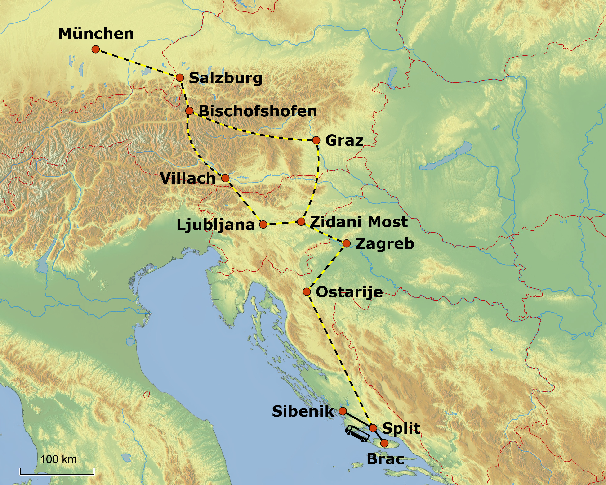 - 7x Übernachtung im Doppelzimmer, Dusche oder Bad/WC im 5-Sterne-Hotel (Lubljana 2x, Zagreb 2x, Split 3x).